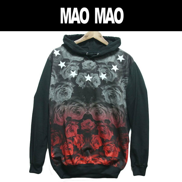 【送料無料】MAO MAO プルオーバーパーカー ストリート系 フード付き スウェット メンズ 花柄 星柄 スター バラ ハードロック バイク プリント お洒落 秋冬 長袖