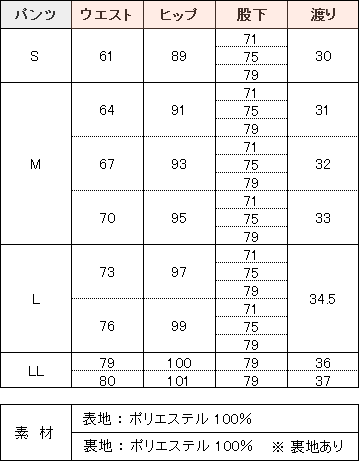 ■ スリムラインパンツ サイズ表 ■ ■ スリムラインパンツ サイズ表 ■
