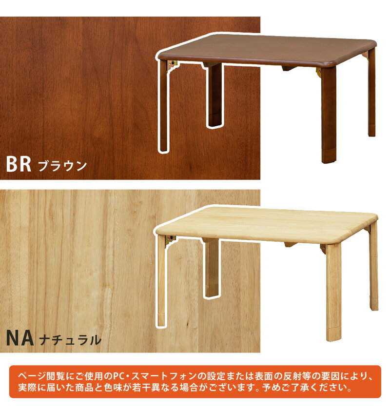 カラー ブラウン(BR) ナチュラル(NA) サイズ (W)幅75cm×(D)奥行き50cm×(H)高さ33/38cm 天板の厚み:約1.8cm 折りたたみ時の厚み:約7.8cm 材質 天然木ラバーウッド(ラッカー塗装) 重量 7.1kg 梱包サイズ W80×D53×H10cm 8.1kg 送料 送料無料 沖縄県配送不可 原産国 ベトナム