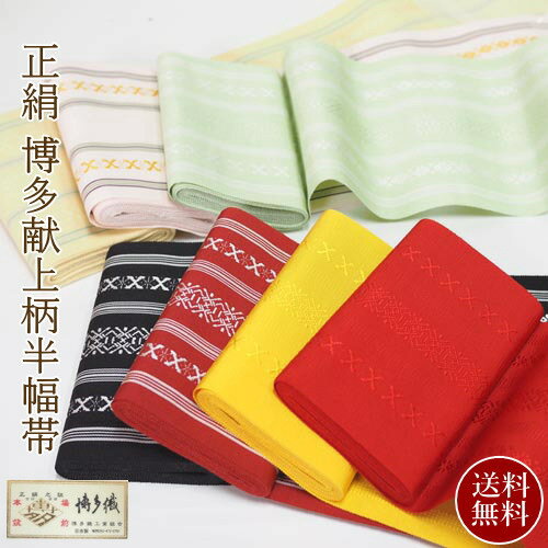 博多織 半幅帯 正絹 レディース 献上柄 浴衣帯 夏 着物 小紋 無地 博多帯 博多半幅帯 森博多 本場筑前 国産 献上 夏 一重 単帯 ゆかた 約16cm 幅広 白 黄 緑 黒 送料無料 4寸3分 博多織 和物屋 小紋 紬 デニム 竺仙浴衣 1年中使える 着付け教室 普段着 着付け教室