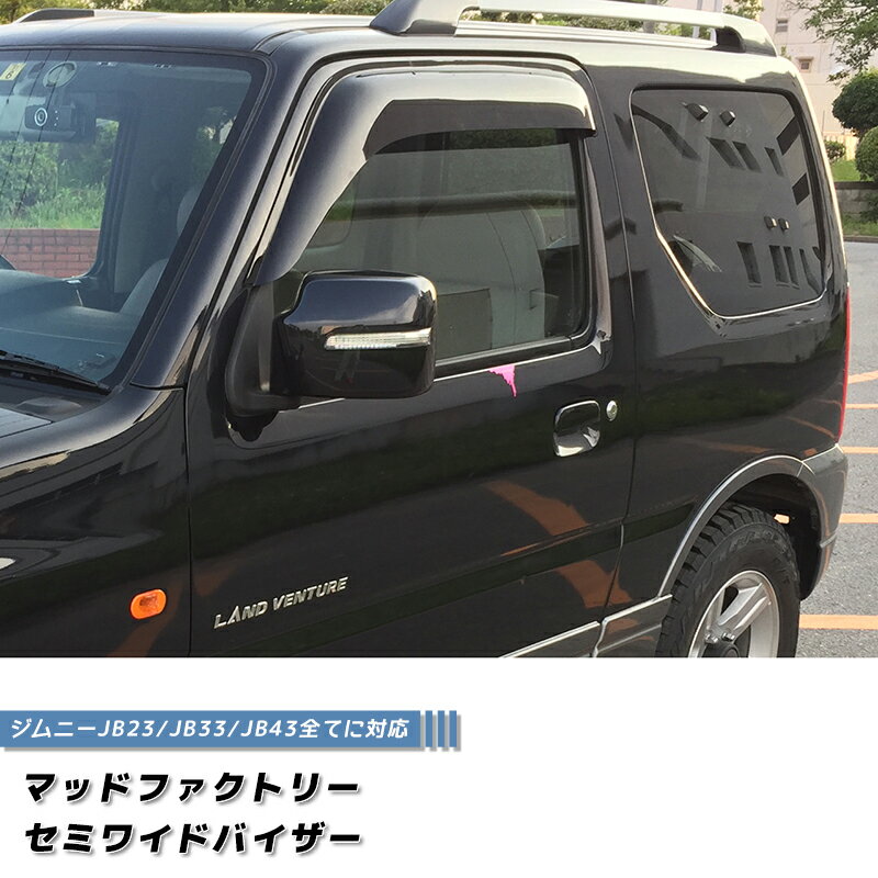 ジムニー JB23 JB33 JB43 シエラ ドアバイザー セミ ワイドバイザー ダーク パーツ JB23W JB33W JB43W 1型 2型 3型 4型 5型 6型 7型 8型 9型 10型 最終型 ワイルドウインド ワイルドウィンド ランドベンチャー 雨除け サイドバイザー 純正 形状 バイザー カスタム パーツ カ
