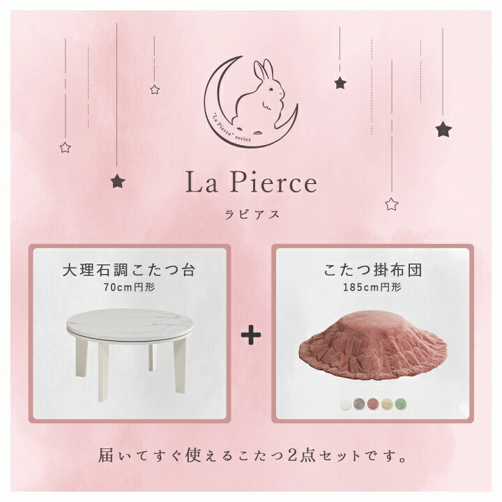 【★全品P10倍★9/7限定】 こたつ セット 円形 こたつテーブル おしゃれ 白 丸 「 大理石調こたつ ラピアス 2点セット 」 台:直径70cm 布団:直径185cm こたつ布団 円形 エコファー フェイクファー 洗える こたつ台 大理石風 柄 マーブル ローテーブル